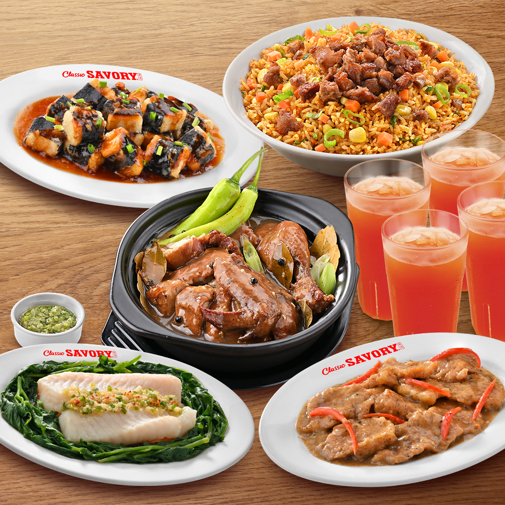 Savory Classic Lomi Soup, Choice of Chicken, Savory Shanghai Rolls,