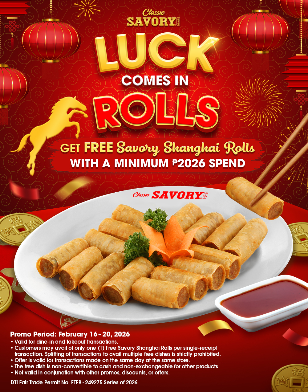 - Coupon entitles you to a FREE 6pcs. Savory Shanghai Rolls at Classic Savory SM Taytay branch.